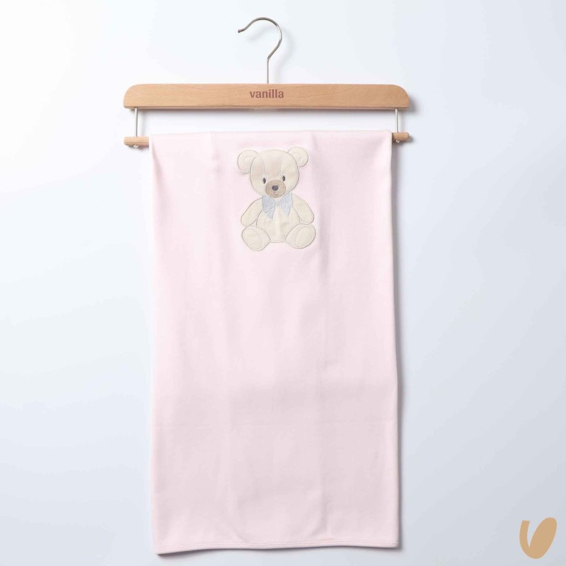 Cotton jersey blanket with embroidered bear