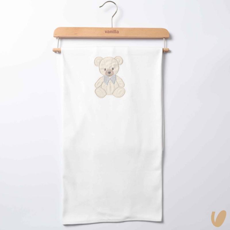 Cotton jersey blanket with embroidered bear