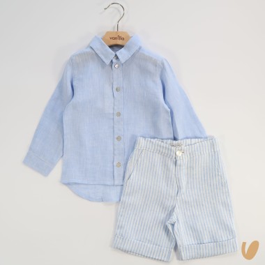 Striped berries with twist, functional mother-of-pearl button, chino cut pockets and internal regulator