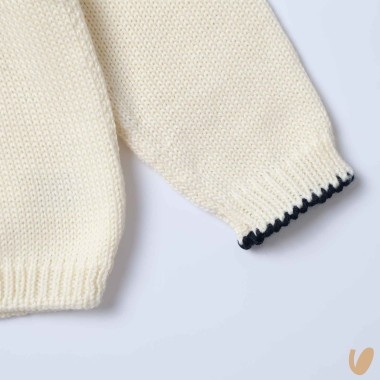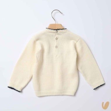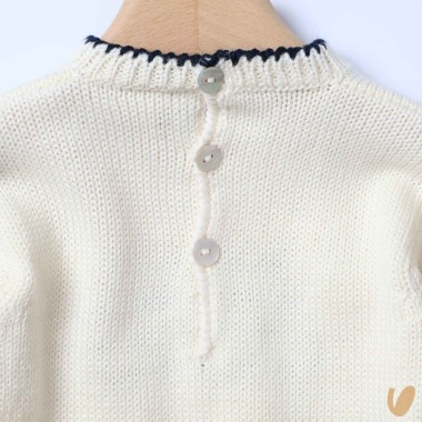 Mixed wool sweater with embroidery handmade of honeycomb and crochet hem