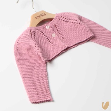 Short tricot cardigan with tracery and 2 buttons