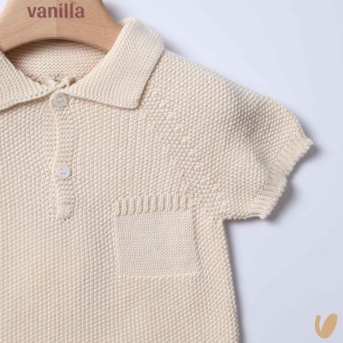 Pure Pole Organic Cotton Wire Knitted Rice Processing, Inlaid Pocket, Mother-of-Pearl Buttons