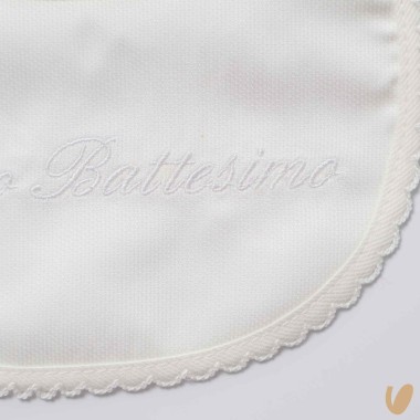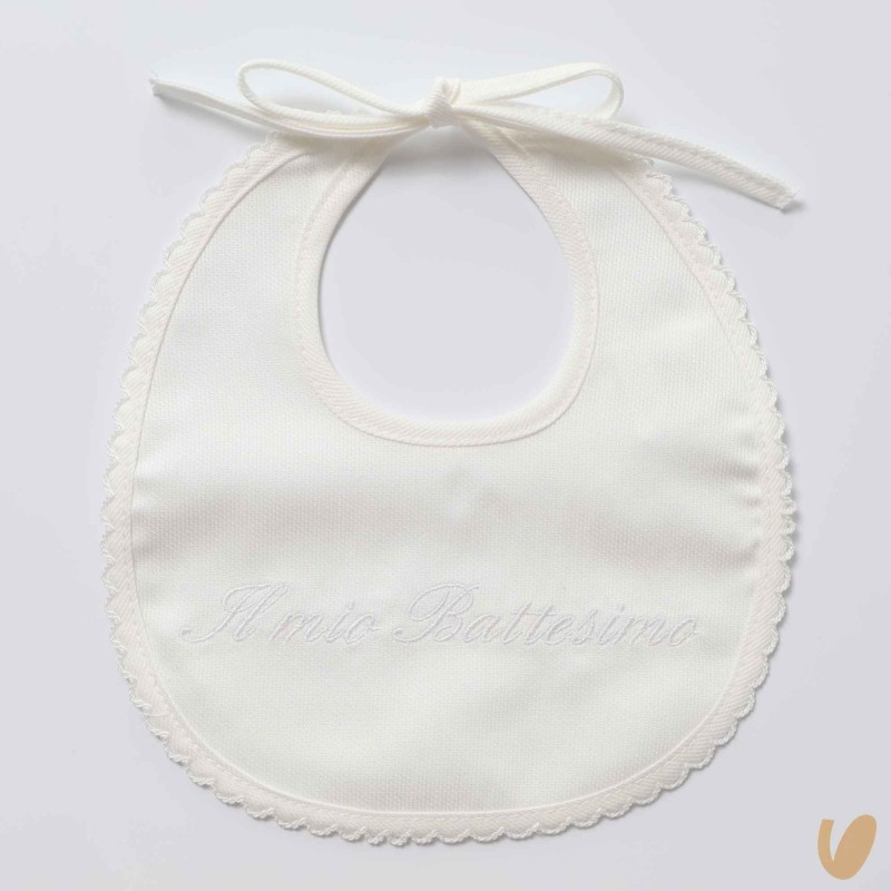Piquè bavetta scalloped hem and embroidery my baptism