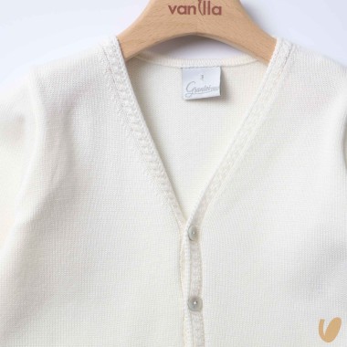 Lovely Elegant V-neck cardigan with mother-of-pearl buttons and hem with braided knit