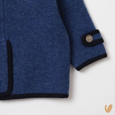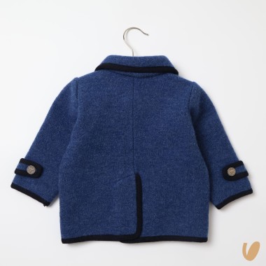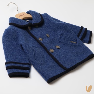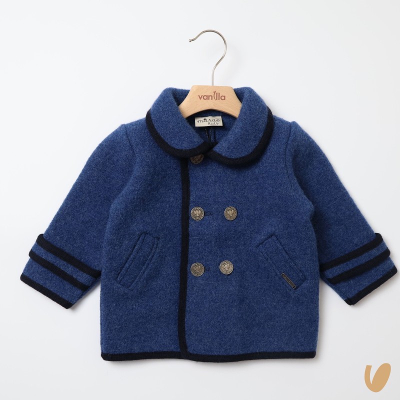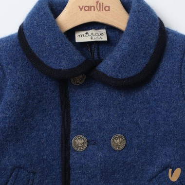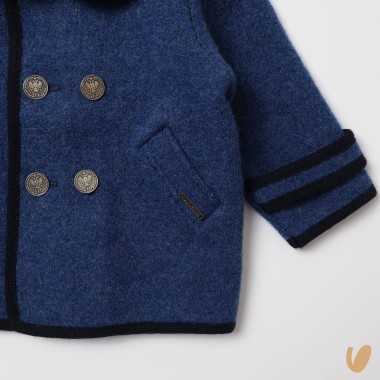 Double-breasted wool pure coat, contrasting lips, metal buttons