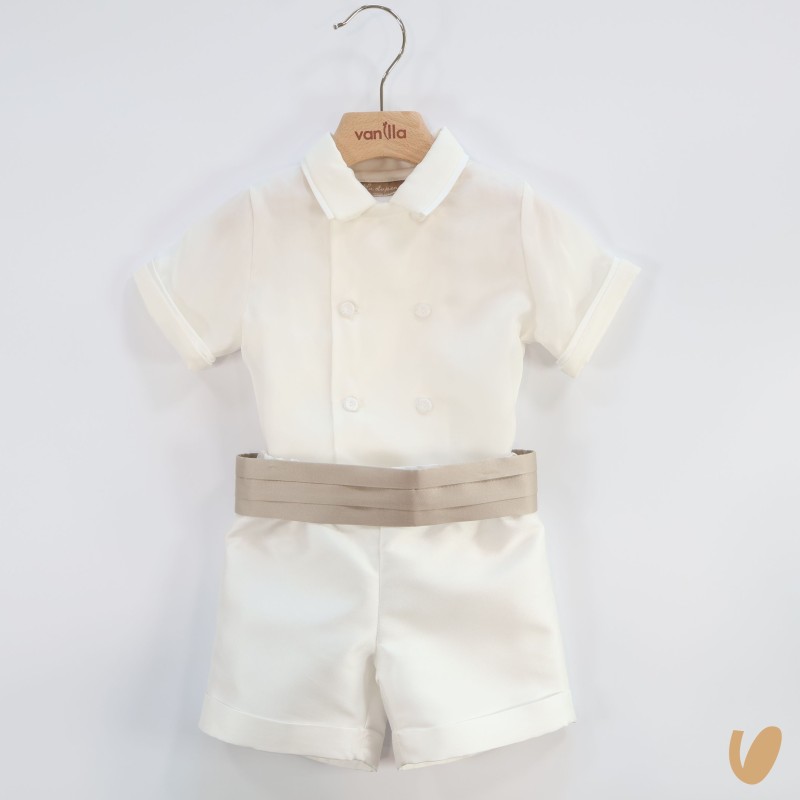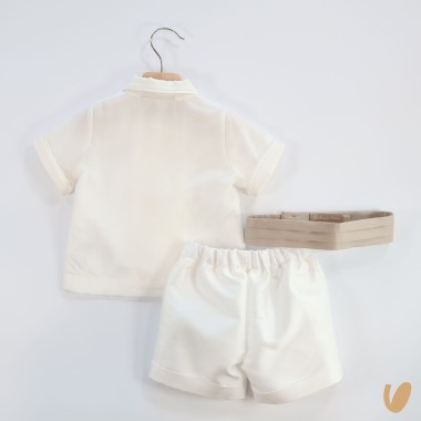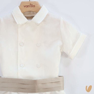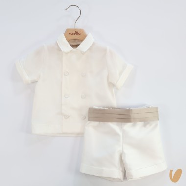 Pure silk (100)%seta) , double-breasted short sleeve shirt and covered buttons