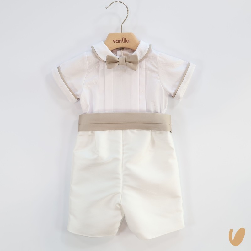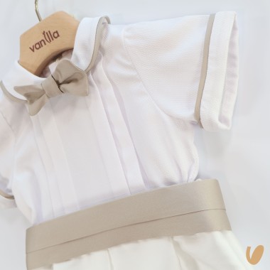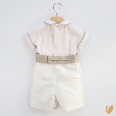 corpetto in piquè with silk blend trousers, sewn folded belt