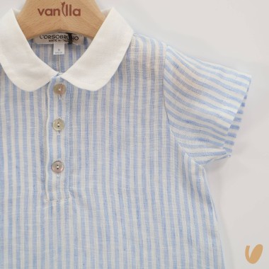 linen collar, mother of pearl buttons