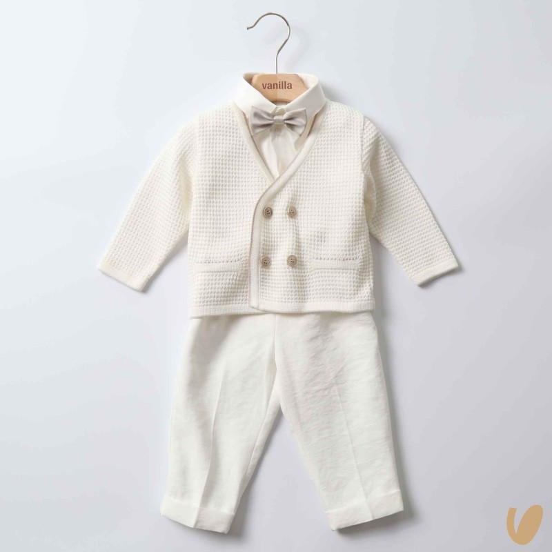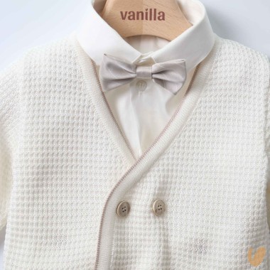 100% cardigan double-breasted cotton wire, beige buttons and inlaid pockets