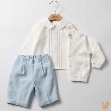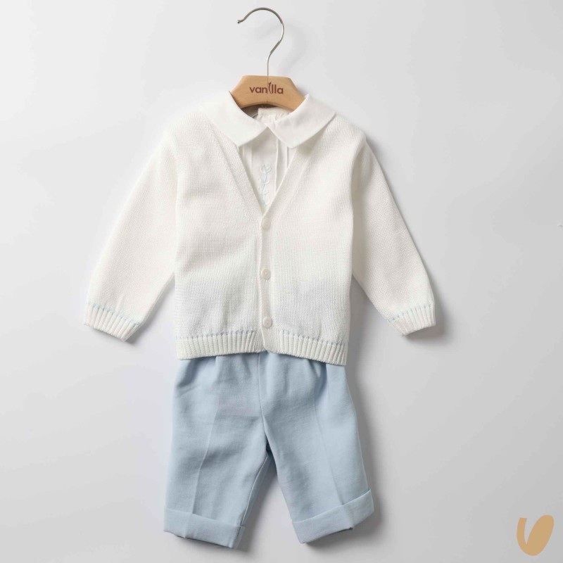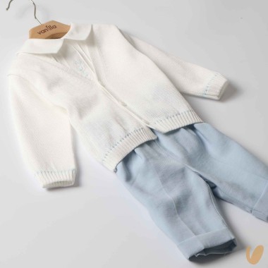 Cardigan 100% Cotton Wire V-neck Light blue, mother-of-pearl buttons