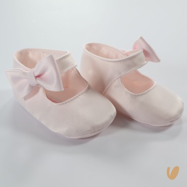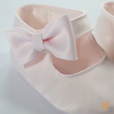Satin dancers with ankle bow, ankle buttoning with snap closure
