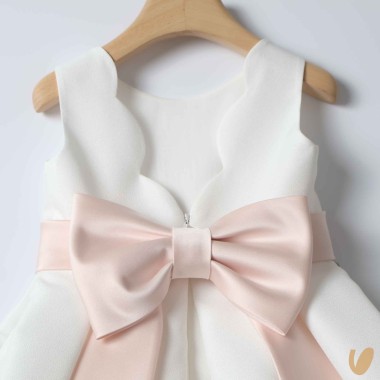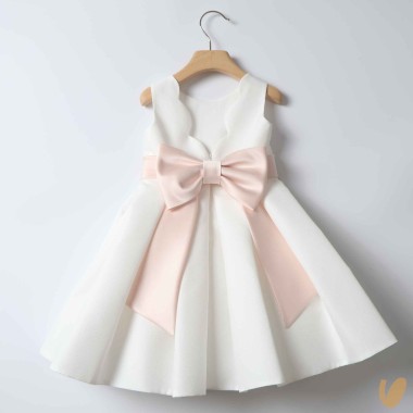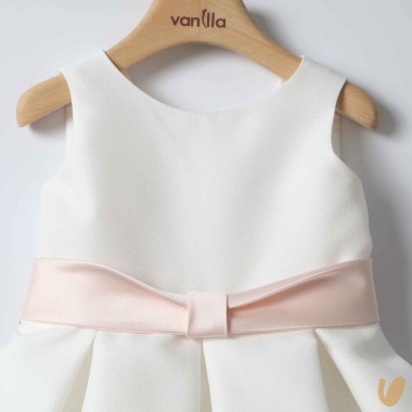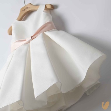 Ceremony sartorial dress model with kisses skirt, belt with fixed bow on the back,