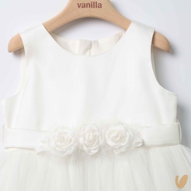Elegant dress with mikado effect bodice and tulle skirt with rim in Grin Grein