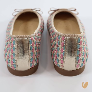 Wonderful gold laminated leather dancers with tapestries in fuxia satin and green water