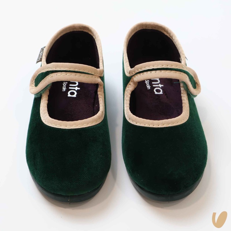 Soft velvet ballerina with rubber sole strap with drop closure and velcro