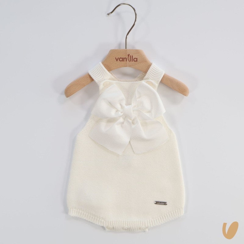 Cotton threaded salopette with grosgrein bow