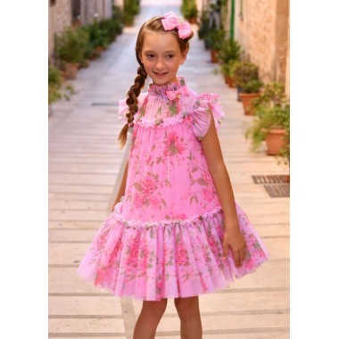 Dress with cotton jersey bodice and tulle skirt with Volant Plissè