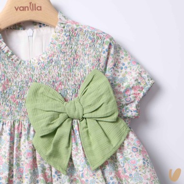 Short sleeve dress in bee nest and bow