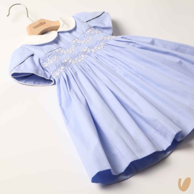 Cotton poplin dress we recipe flower smock point made by hand