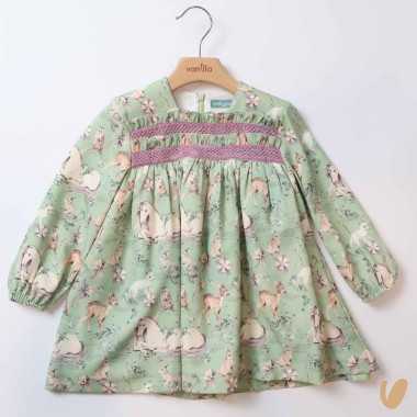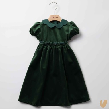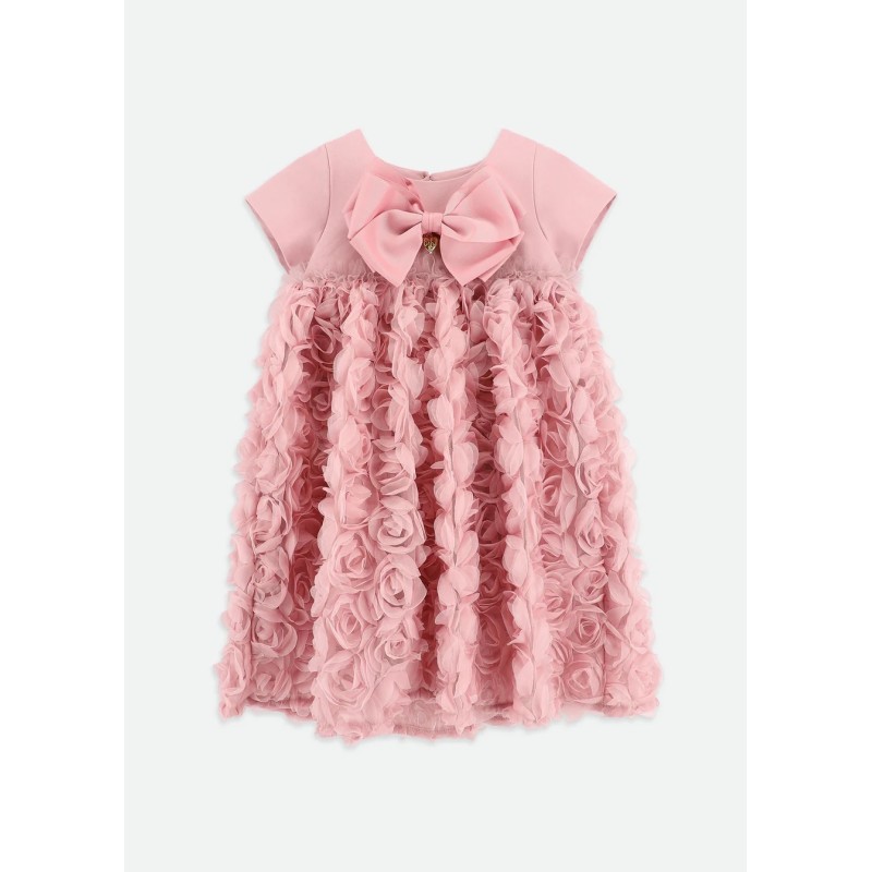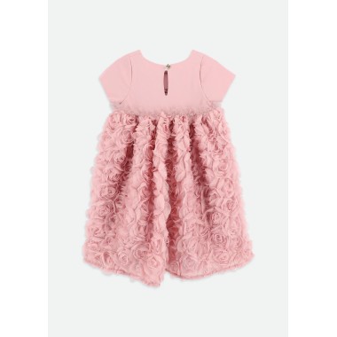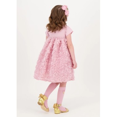 short sleeve dress, iconic bow angel face in grein gros, empire cut, skirt with embossed roses