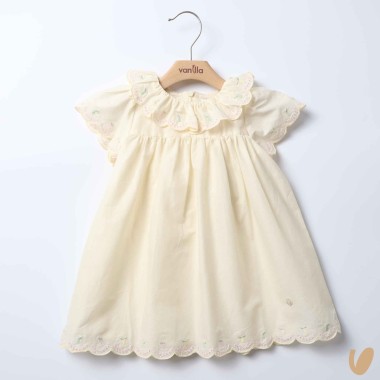 Short sleeve dress with embroidery smock-contrast pitch fishing