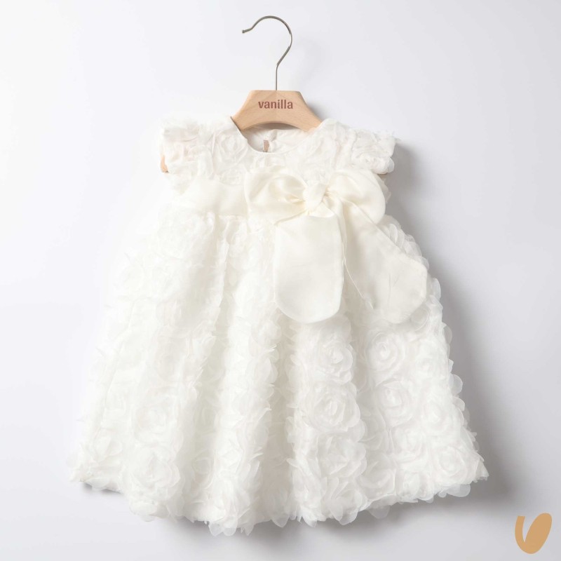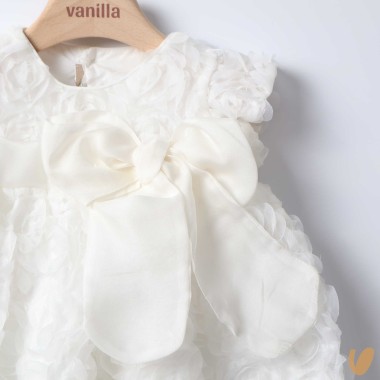 Empire cut with belt and staple sewn in pure silk, sleeve Volant, wide skirt