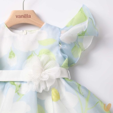 Daffodil fantasy chiffon dress, belt with removable brooched flower ViEllat sleeves