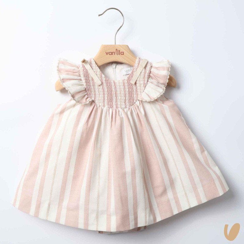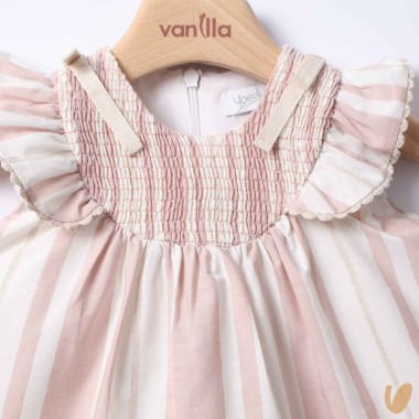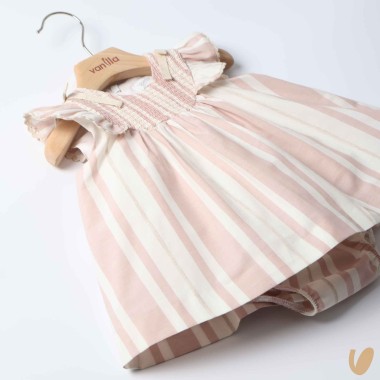 Mini light pink striped dress, cream and beige with culotte