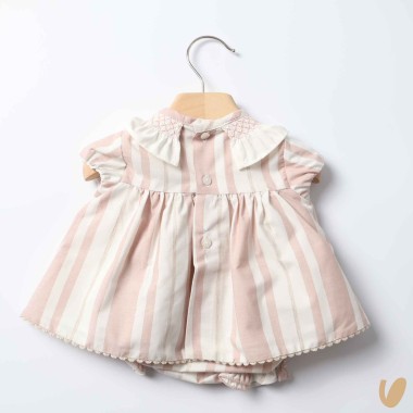 Mini light pink striped dress, cream and beige with culotte