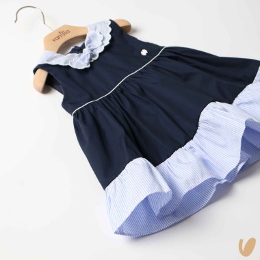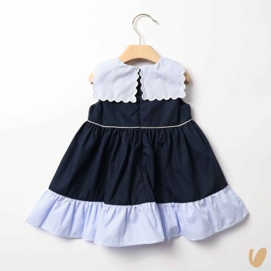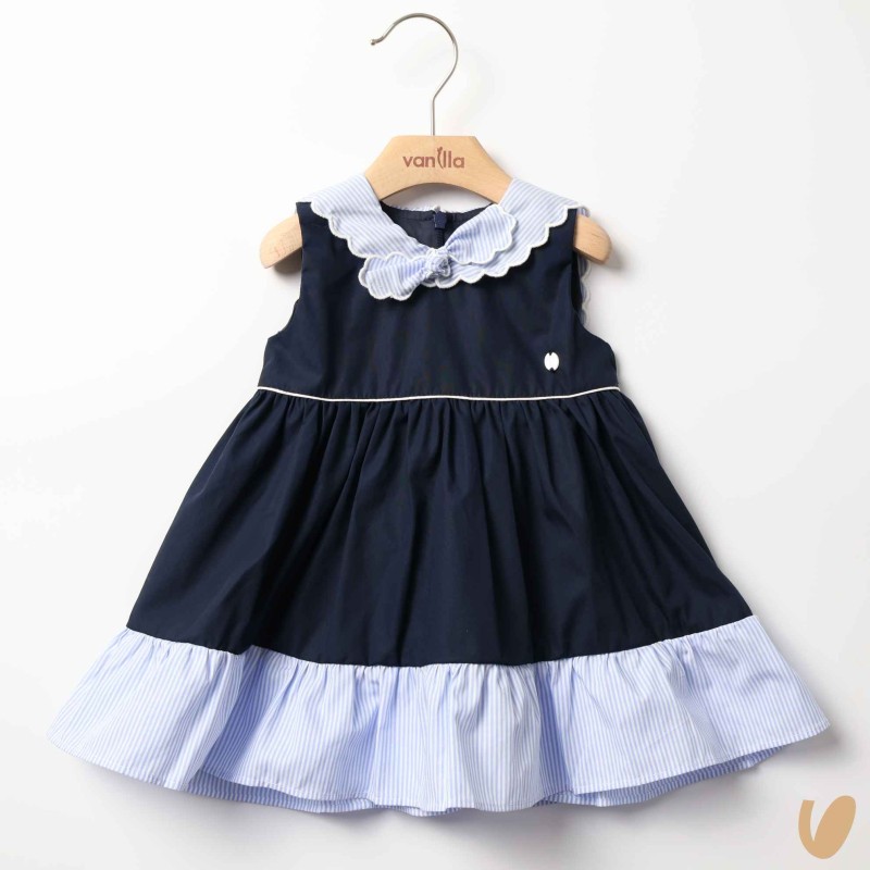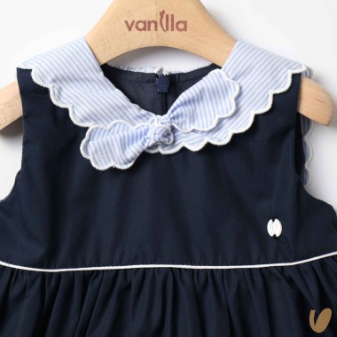 Marinkey dress with striped inserts, marinar scalloped neck and bow