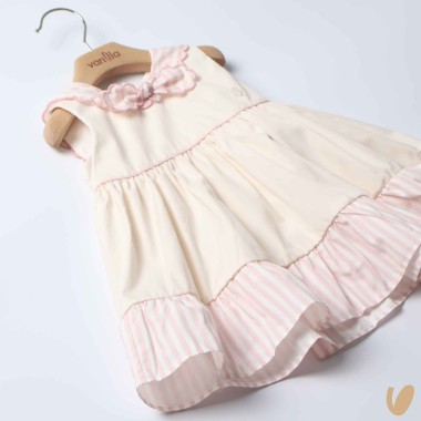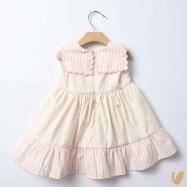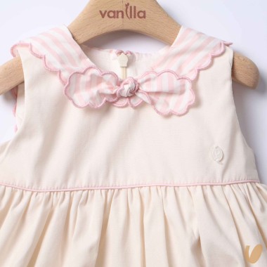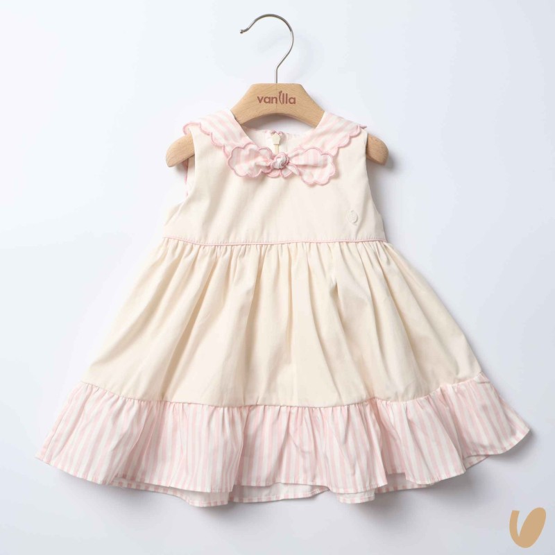 Marinkey dress with striped inserts, marinar scalloped neck and throat bow
