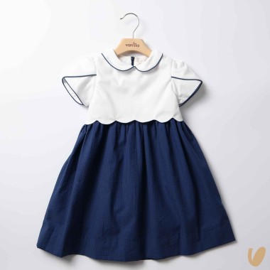 Tennis model dress with pleated skirt, pockets and cotton necks with grosgrein
