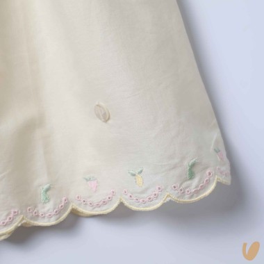 Imperp cutting cotton dress with embroidered sangallo profiles with lemons and pink day point