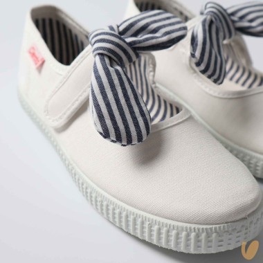 Canvas ballerina with removable bow, Velcro strap, EXTIORIBLE HOLLE, FROM FOLDED RUBBER SOLE