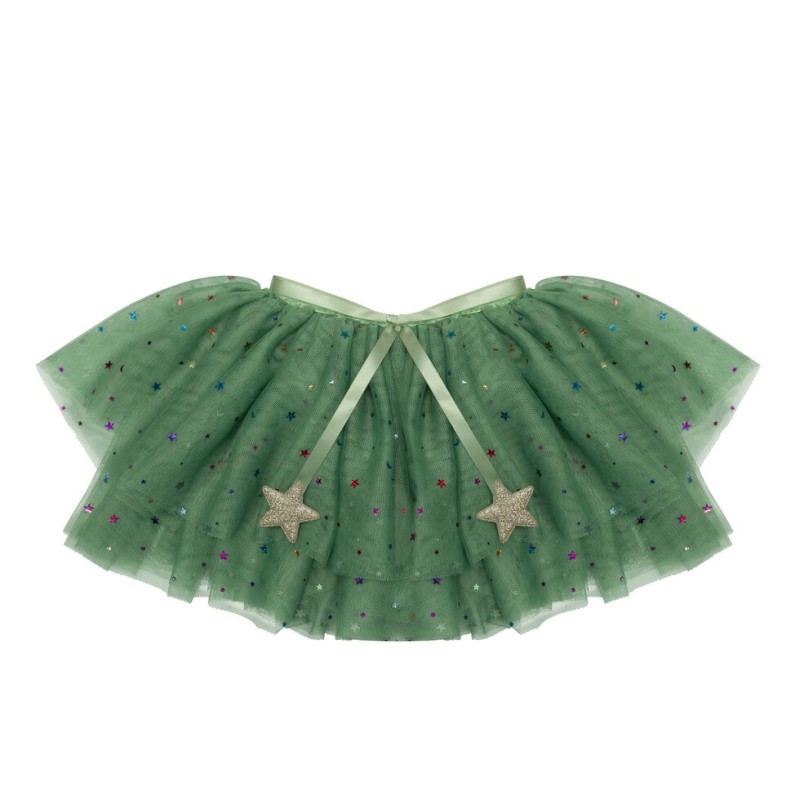 Hood in double balza tulle with application of lurex stars, satin edge with bow clasp with stars