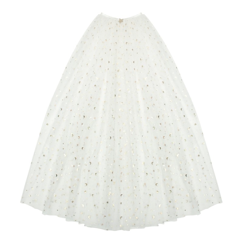 Layers of beautiful white tulle embellished by moons and metallic golden stars