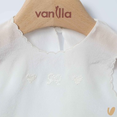 Lucky shirt in pure silk with embroidery of love knot and cross stitch hearts