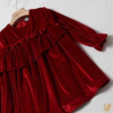 Long sleeve dress in smooth velvet with jumping on the Empire cut