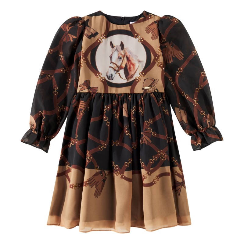 Long sleeve dress in crepe fancy pony