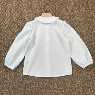 Cotton shirt with round collar and balloon sleeve