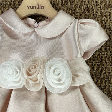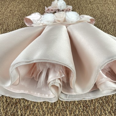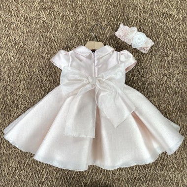 Short dress in mikado balloon sleeve and collar with organza skirt,