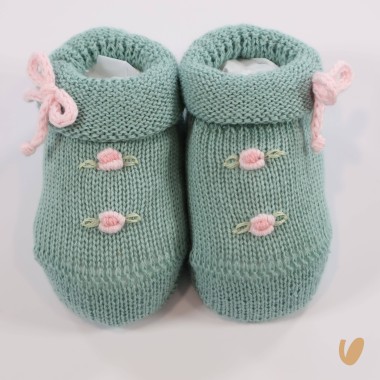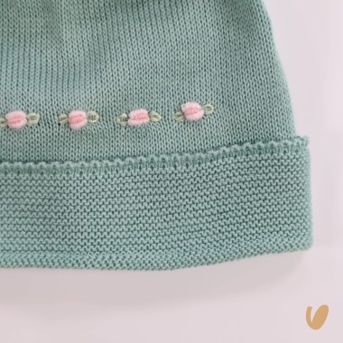 Complete hat and slippers in cotton thread with little roses