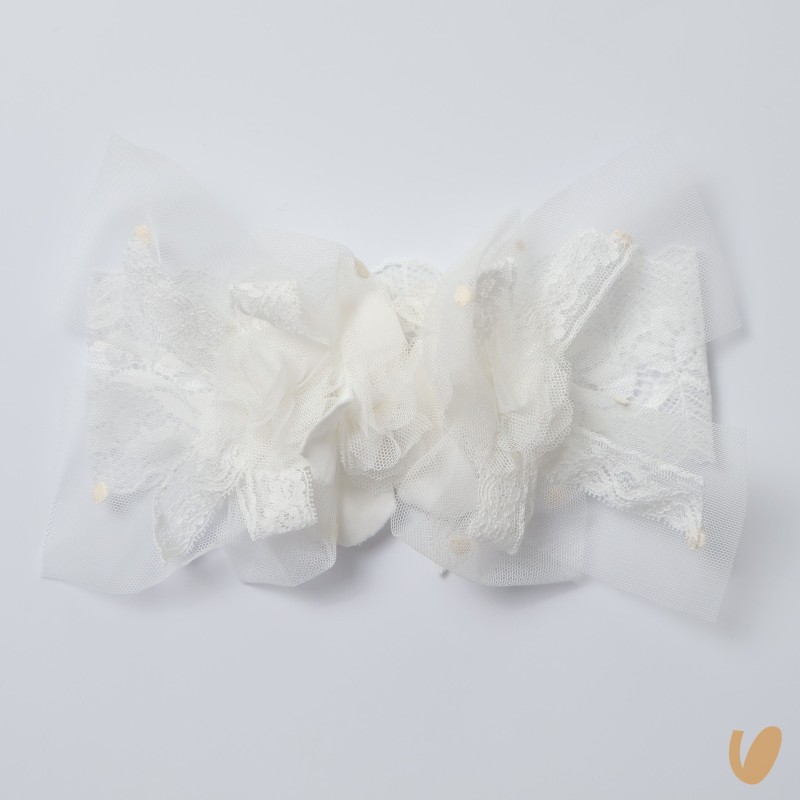 Elastic base base with flakes in tulle and chiffon flowers