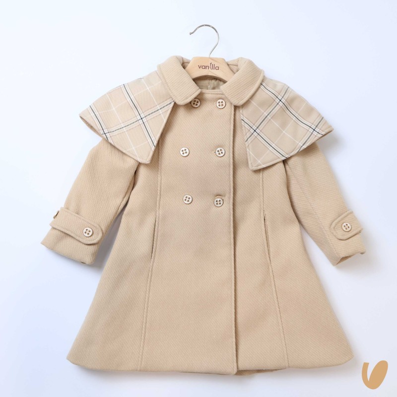 Cloth in cloth with reversible cape, Solid color and paintings, Mother-of-pearl jewel buttons