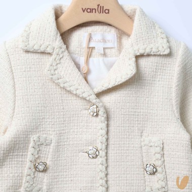 Beige Tweed Jacket and Lurex Gold with Camellia Jewel Buttons and Braided Lips