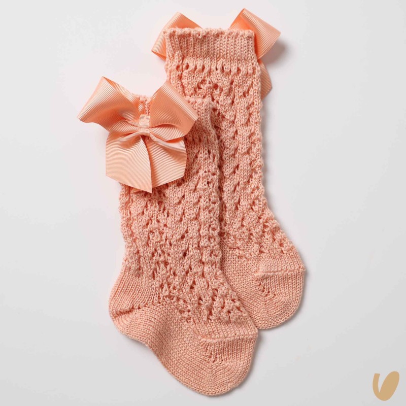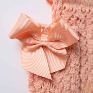 Long sock under the perforated knee in cotton thread with bow application in Gros Grein