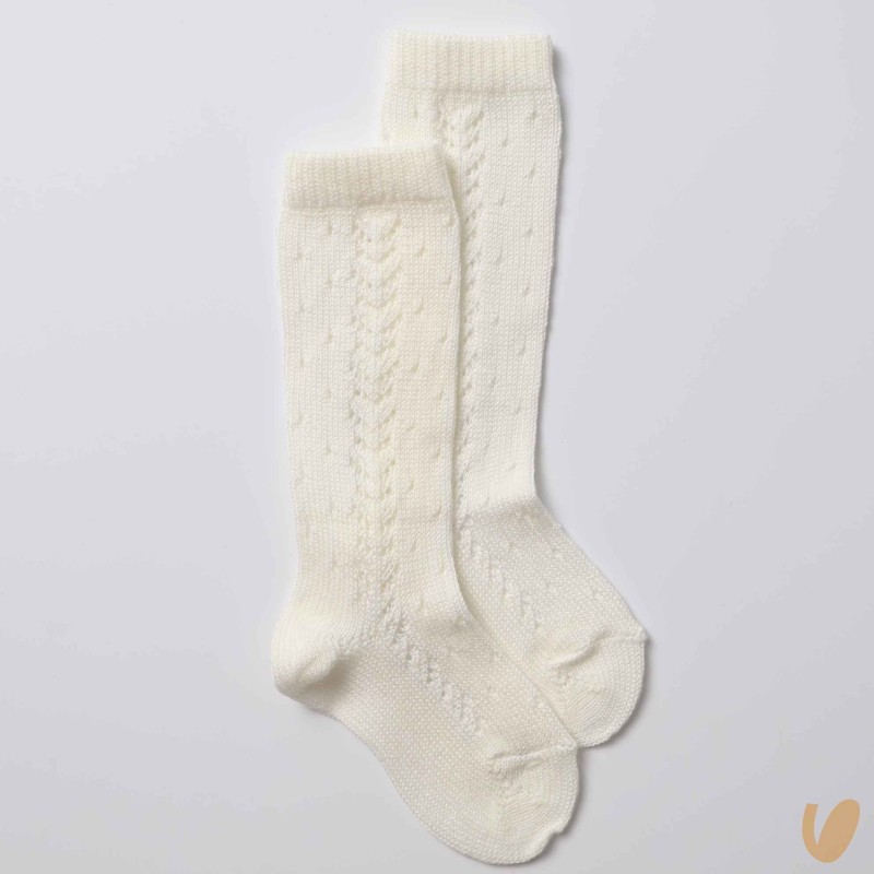 Long sock under the perforated knee in cotton thread