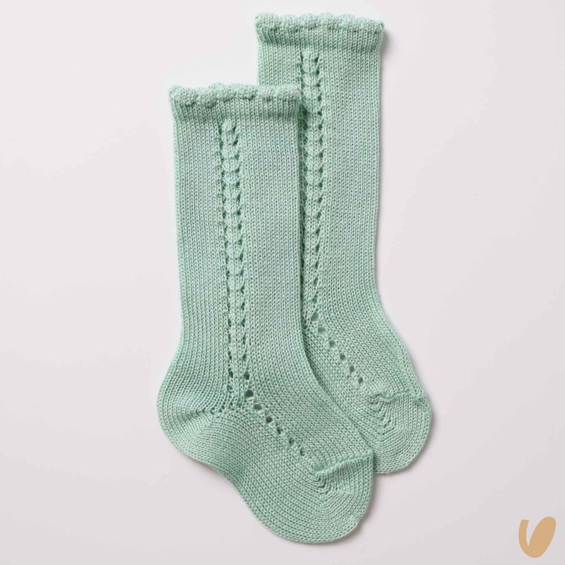 Long sock under the side perforated knee in cotton thread