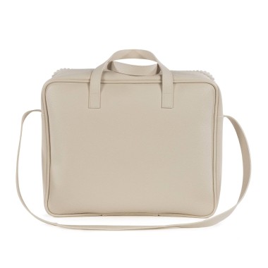 The Icon Cream baby bag in Pasito is the perfect bag for hospital/clinical, a unique and fashionable model specially designed for you, dad, and baby. It is made of durable and soft eco-leather. Its rectangular shape offers comfort to cover all your needs (pijamas or accessories) during childbirth day. It is a simple, modern and practical design that offers ample space to transport many things and has a convenient opening to facilitate the search for what you have placed. It comes with a long handle to hang on the shoulder and two short handles for hand transport, if preferred. High quality finish. The hospital briefcase is equipped with inner lining with elastic bands to keep the clothes and closes safely with a two-way zipper that allows you to completely open the cover. Made from high quality materials, free of azoic, phthalate and harmful substances for health. Also, it can be washed by hand or in the washing machine at temperatures up to 30o. Pasito children's products in Pasito have a very different design than others. Their collections are characterized by meticulous work, always designed from a practical point of view. They use high quality materials to emphasize elegance and harmony in each of their pieces. Our models are exclusive and have an unmistakable style, designed for modern moms who have good taste and appreciate the details as much as we do. Specifications: Material: Ecopelle. Color: Beige. Measurements: 44X36X16 cm.