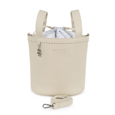 Bag bucket for Stroller Icon of Pasito in Pasito. Made of high quality eco-leather in an elegant pastel pink hue, this bucket bag for stroller stands out for its delicate edge and the pretty metal pendant in the shape of a bear, which adds a unique touch. It is the ideal accessory to transport the essentials of your child with style and practicality during walks. Its compact size is perfect for organizing diapers, bottles and other essential items, keeping everything at hand. The bag is equipped with a practical drawstring closure to protect your personal effects safely. Designed to offer versatility and comfort, it is equipped with a long shoulder strap to carry it to shoulder and short handles to fix it to the stroller. Combining refined functionality and design, it is an essential accessory for your outputs with your child. Made of high quality materials, free of azoic, phthalate and harmful substances, this bag guarantees safety and durability. The products for children of Pasito in Pasito are distinguished by their unique design, always thought from a practical point of view without sacrificing elegance. Each collection is treated in detail, using first choice materials to emphasize the harmony and refinement of each piece. Our exclusive models, with their unmistakable style, are designed for modern moms who appreciate the good taste and details as much as we do. Specifications: Material: Eco-leather Color: Dimensions: 17×22 cm
